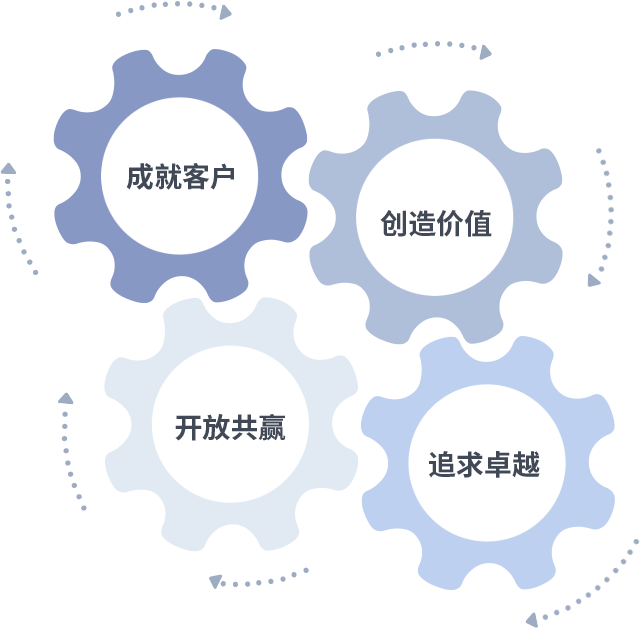 成就客户是一切决策的出发点,创造价值是衡量所有工作的标准,追求卓越是J9国际站做事做人的态度,开放共赢是J9国际站的格局也是最终的结果。价值观的齿轮环环相扣,推动着组织里的每个人不断向前。